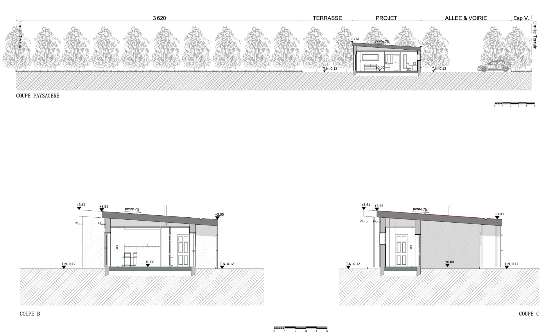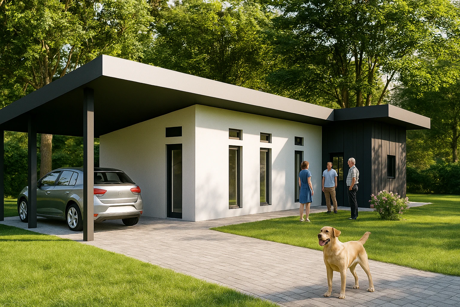 Une maison à toiture à faible pente en membrane